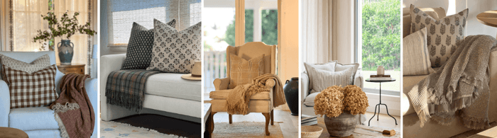- Add texture - waffle weave throws, velvet cushions, leather ottomans. Materiality matters and goes a long way to creating the feeling of comfort.