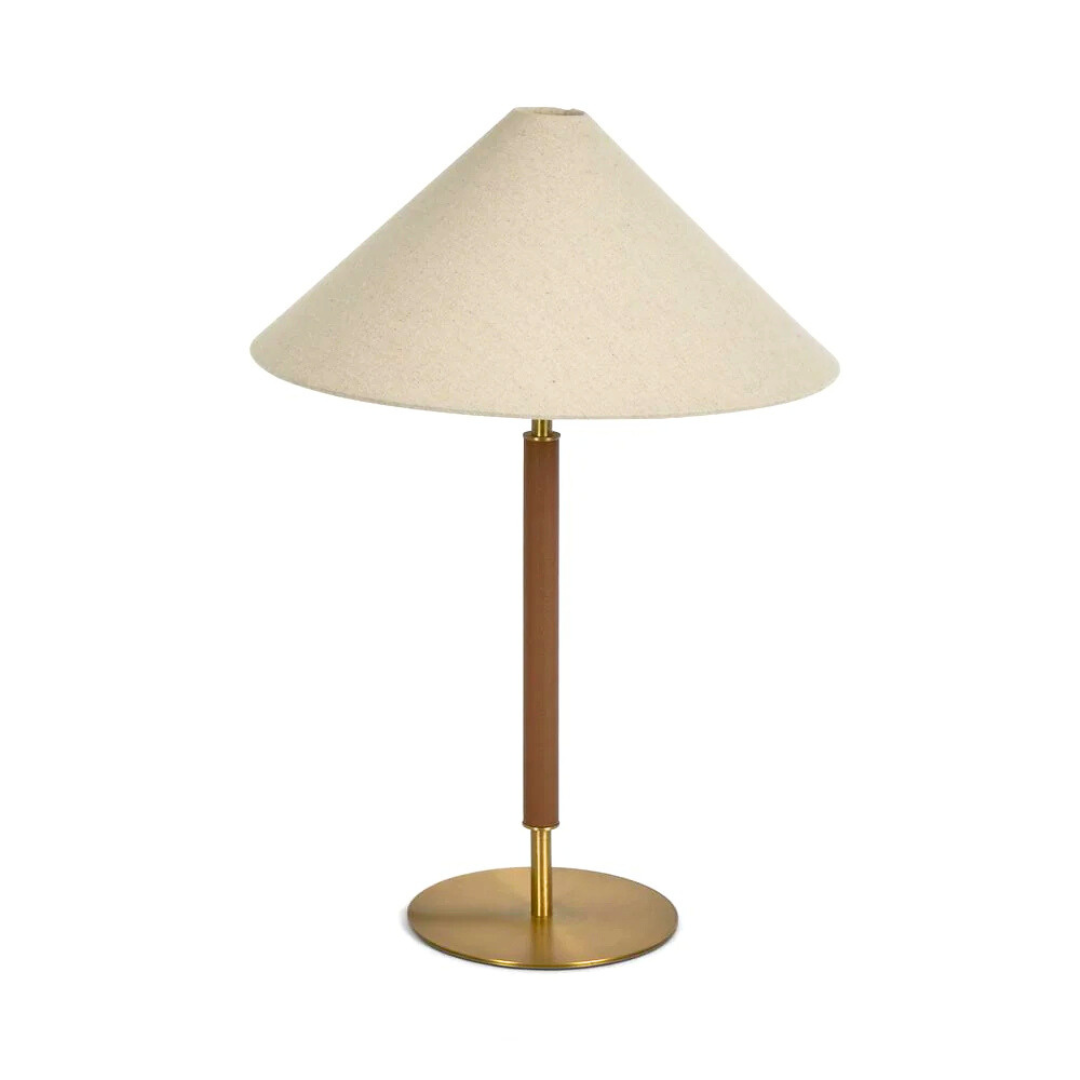 Crafted with a brushed brass base, the Hudson brings a softly aged patina that feels elevated yet understated. The slender column is wrapped in rich saddle-toned leather, finished with subtle stitch detailing for a tailored, handcrafted touch. A classic linen empire shade diffuses the light beautifully, casting a gentle glow that’s perfect for creating a relaxed, collected atmosphere.